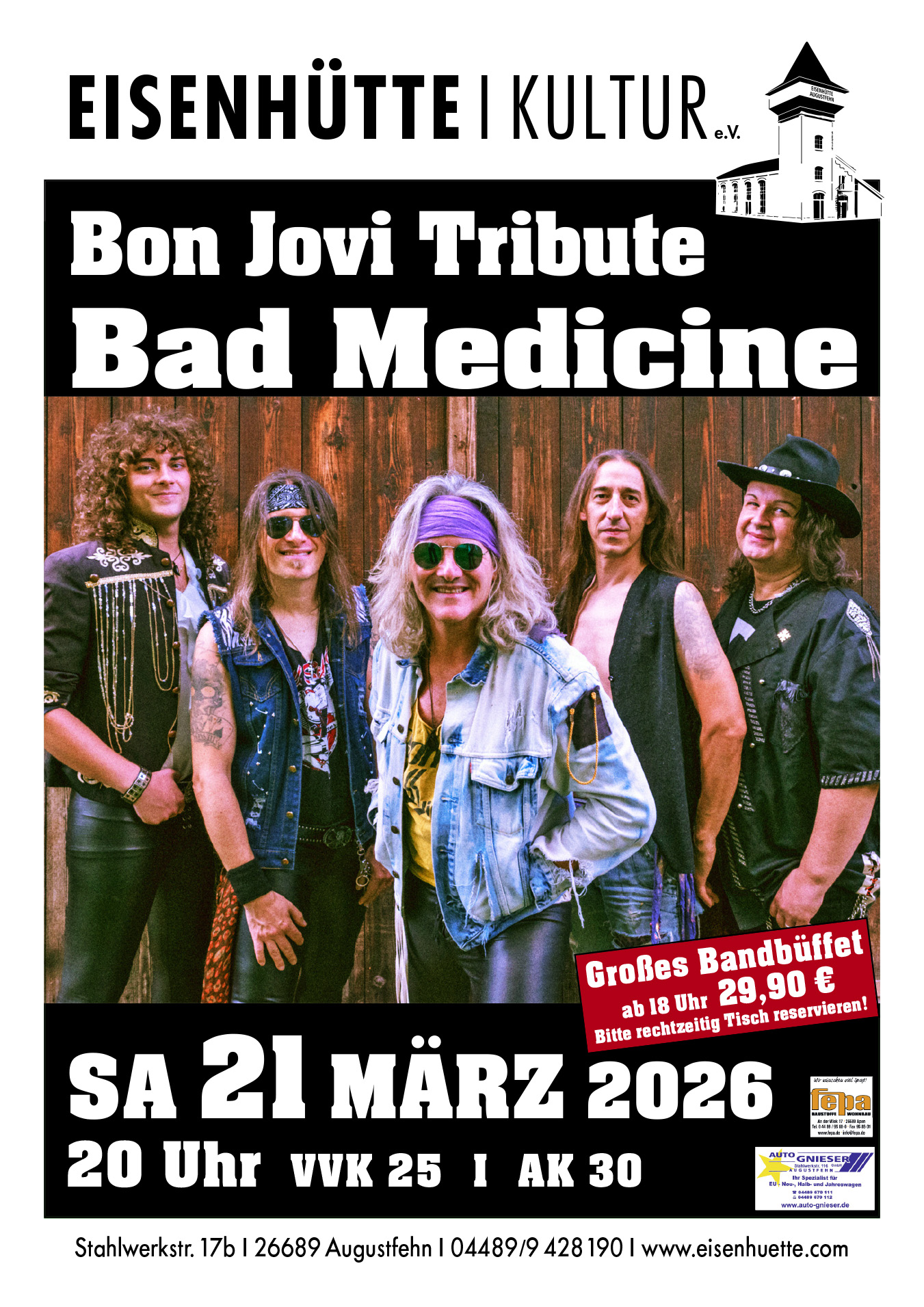 Tickets im VVK direkt in der EISENHÜTTE, bei Nordwest Ticket unter 0421 / 36 36 36 oder 0441 / 99 88 77 66,